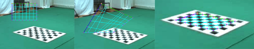 To calibrate camera extrinsics, the program initially required the user to manually specify the corners of a chess board in a frame. This was necessary because the resolution of the cameras was not high enough to automatically detect these corners with sufficient precision. This was an excruciatingly labour-intensive task so we figured we would create a better method for this. Therefore we introduced the FlexGrid, which allows you to just click and drag a lattice until it matches the chess board.